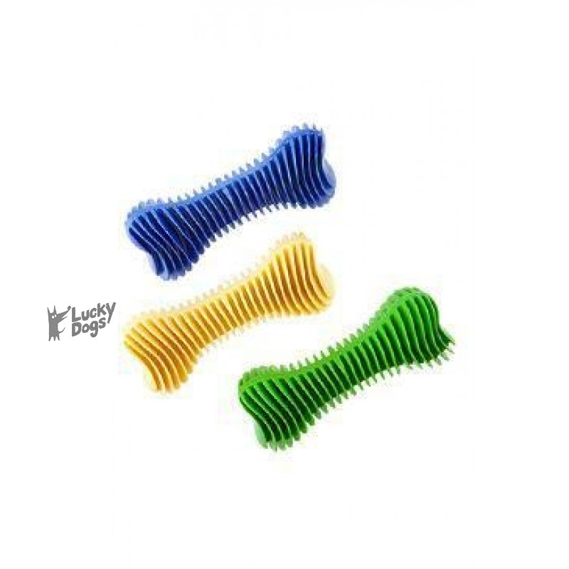 Tato jednoduchá, ale hezká hračka pro psy je výborným způsobem, jak Vašemu mazlíčkovi vykouzlit úsměv na tváři. Hračka je speciálně vytvořena ve tvaru kosti. Vyrobena je z pevných materiálů, které odolají i zoubkům štěňat. Hračka je určena pro žvýkání a kousání, při skusu vydává pískavý zvuk, který pejska podnítí k aktivitě.