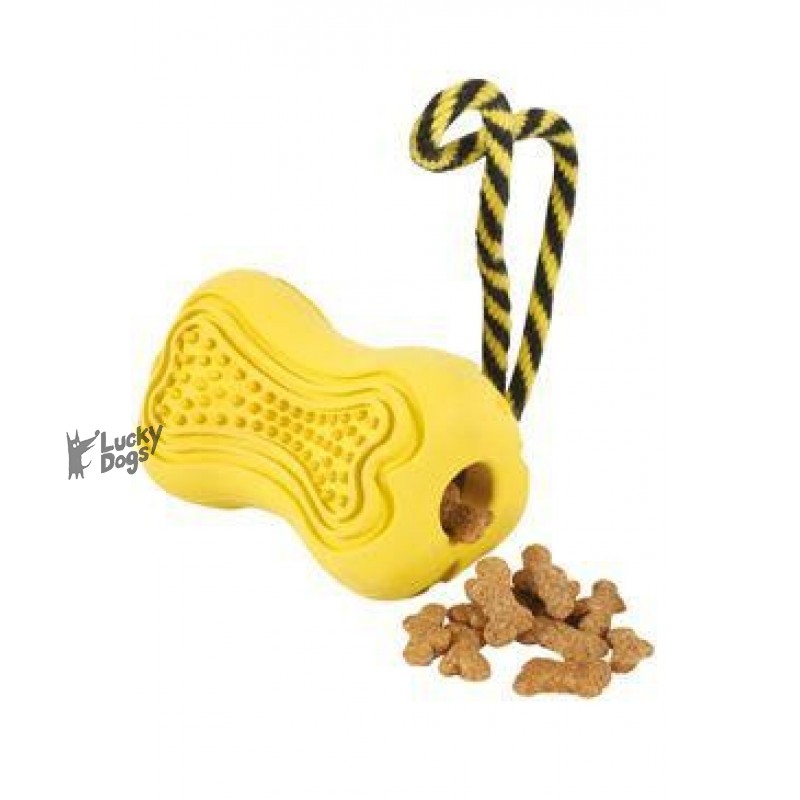 Gumová kosť na maškrty, vhodná aj k samostatnej hre. Maškrty alebo granulky ukryté v kosti budú Vášho psa naozaj zaujímať a zamestnajú ho na dlhšiu dobu. Vďaka tejto jedinečnej kombinácii sa táto gumová kosť čoskoro stane najobľúbenejšou hračkou Vášho psa.