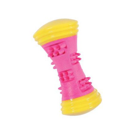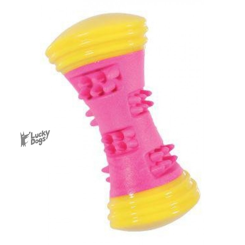 Tato jednoduchá, ale hezká hračka pro psy je výborným způsobem, jak Vašemu mazlíčkovi vykouzlit úsměv na tváři. Hračka je speciálně vytvořena ve tvaru kosti. Vyrobena je z pevných materiálů, které odolají i zoubkům štěňat. Hračka je určena pro žvýkání a kousání, při skusu vydává pískavý zvuk, který pejska podnítí k aktivitě.