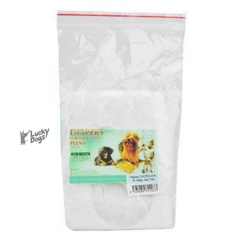 Jednorázová absorpční plena pro psy, zejména štěňata, háravé feny, nemocné psy atp. vhodná na cesty, v domácnosti či pobytu na zahradě, v noci či ve dne. Pleny jsou vyrobeny tak, aby byly pohodlné a nijak nebránili v pohybu. Jemná a měkká povrchová vrstva z netkaného textilu odvádí rychle vlhkost. Mimořádně savý materiál vstřebává rychle tekutinu a vnější folie spolehlivě chrání před prosáknutím. Plena se lehko nasazuje díky upínacím páskům, které jsou upraveny tak, aby se nezachytávaly srst mazlíčka.Pleny je možno použít pro: štěňata, feny které hárají, psy trpící inkontinencí, pobyt psa doma ve vaší nepřítomnosti, pooperační stav Vašeho zvířete, nemocné psy, staré feny.