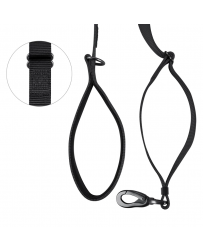 - na rukojetí je kovový kroužek, který lze použít k připnutí vodítka kolem těla a mít volné ruce