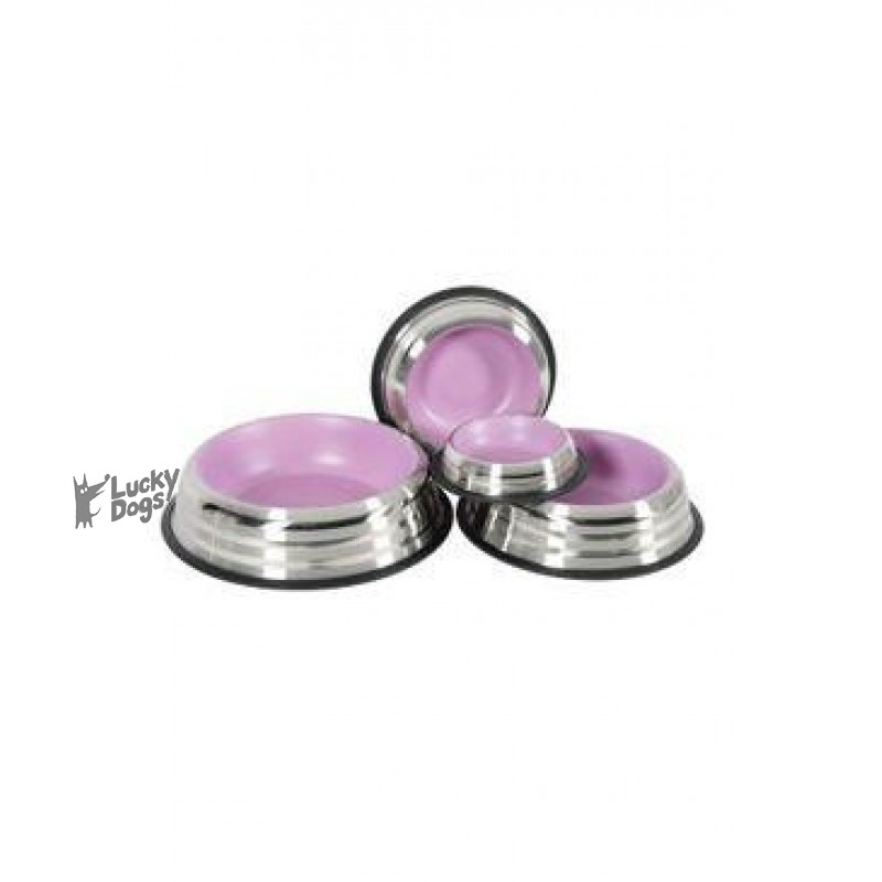 Krásna dizajnová nerezová miska s vnútorným keramickým efektom v matnej modrej farbe. Po obvode misky sú matné nerezové pruhy, ktorý dodajú miske zaujímavý dizajn. Miska je protišmyková, čo zaistí jej fixáciu na podlahe a zvierati pohodlné kŕmenie. Je určená na vodu či krmivo pre veľké a stredné plemená. Jednoduchá na údržbu, stačí umyť v teplej vode.