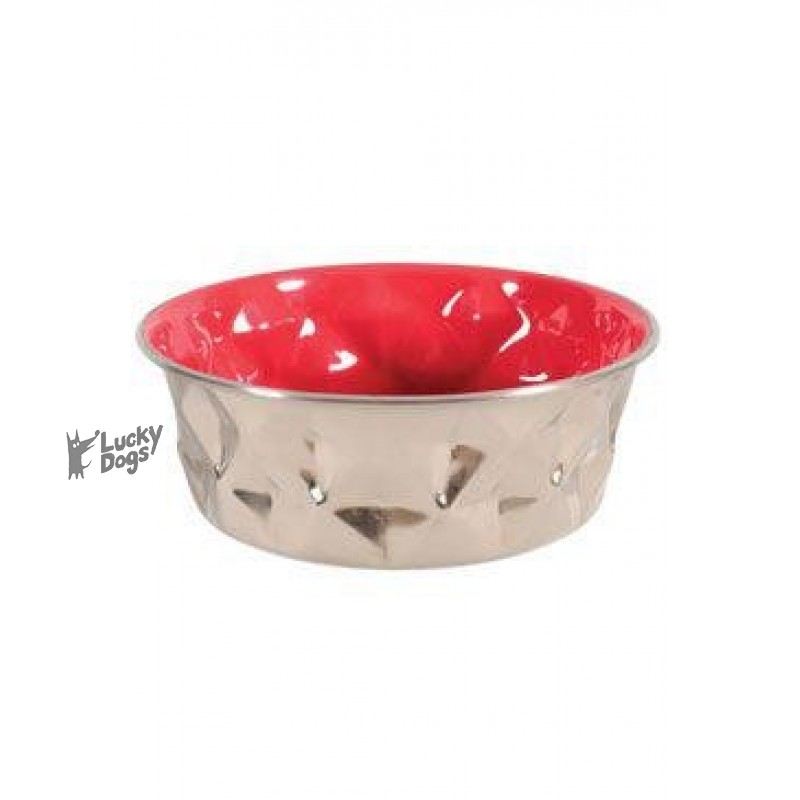 Krásna dizajnová nerezová miska s protlačeným povrchom v tvare diamantov. Vnútorná časť má farebnú úpravu s keramickým efektom. Miska je protišmyková, čo zaistí jej fixáciu na podlahe a zvierati pohodlné kŕmenie. Je určená na vodu či krmivo pre veľké a obrie plemená. Jednoduchá na údržbu, stačí umyť v teplej vode.