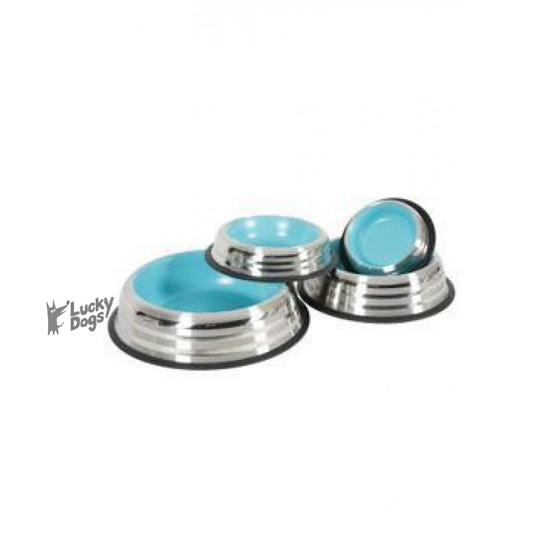 Krásna dizajnová nerezová miska s vnútorným keramickým efektom v matnej modrej farbe. Po obvode misky sú matné nerezové pruhy, ktorý dodajú miske zaujímavý dizajn. Miska je protišmyková, čo zaistí jej fixáciu na podlahe a zvierati pohodlné kŕmenie. Je určená na vodu či krmivo pre malé plemená. Jednoduchá na údržbu, stačí umyť v teplej vode.