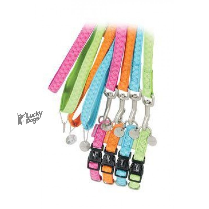 Nový rad vodítok a obojkov MAC LEATHER v atraktívnych jasných farbách má originálny a elegantný dizajn, je vyrobená z kože a podšitá textilným materiálom.Obojky sú opatrené kovovým medailóniky.