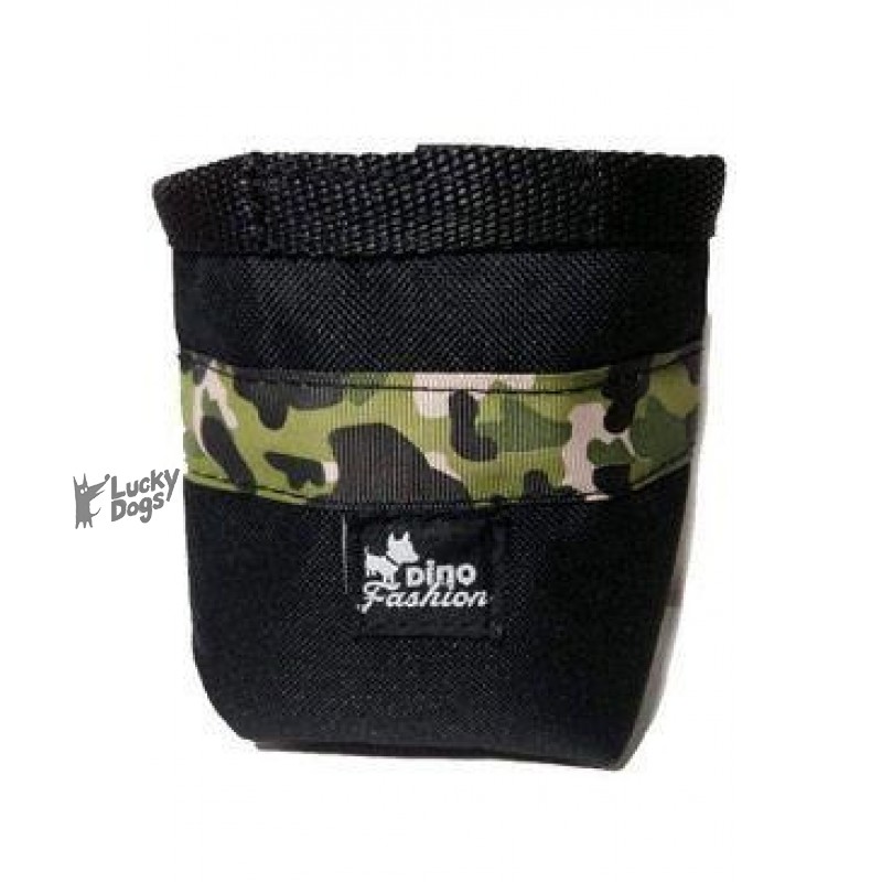 Pamlskovník Dinofashion je praktická taštička na maškrty vyrobená z pevnej vodeodolné látky s motívom Zelený maskáč. Zapína sa na suchý zips. Vnútro pamlskovníku obsahuje podšívku, z ktorej ľahko vyprášite zvyšky maškŕt. Na zadnej strane je našitá karabína, ktorá sa pripevní na pútko nohavíc alebo opasok. Vyrobené v Českej republike.