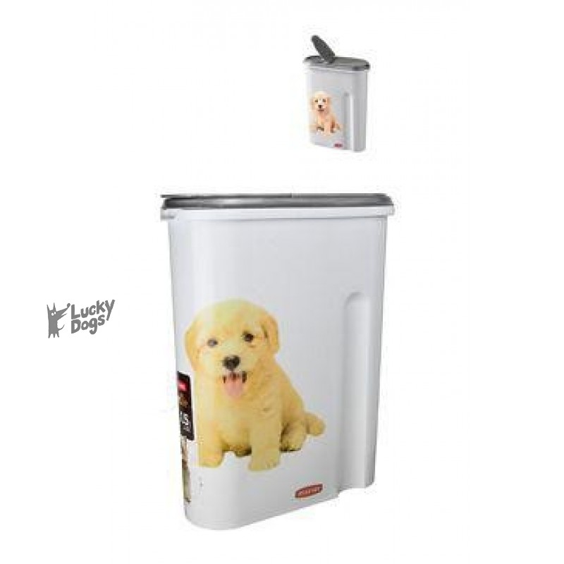 Praktický pomocník na uskladnenie suchého krmiva. Predovšetkým napomáha vďaka hermetickému uzavretiu a zabráneniu cirkulácii vzduchu udržať krmivo čerstvé. Tým pádom sa v krmive zachovávajú aj všetky potrebné vitamíny a minerály. Disponuje ľahko prístupným otvorom na každodenné používanie. Kvalitné tesnenie zabraňuje úniku zápachu. Pre ľahkú manipuláciu má kontajner odolné držadlo a pre prehľad o množstve krmiva má vnútornú stupnicu.